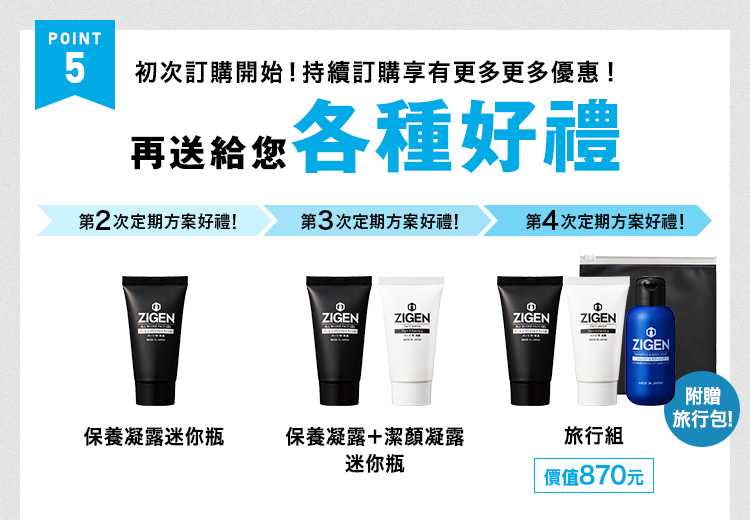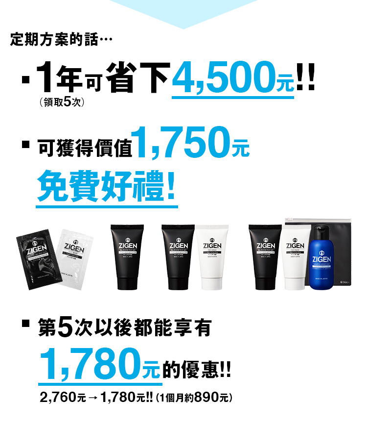 定期方案並無綁定寄送次數、隨時皆可解約。解約時,請於下次寄送前10天以電子郵件聯絡我們contact-tw@zigen-shop.com